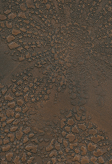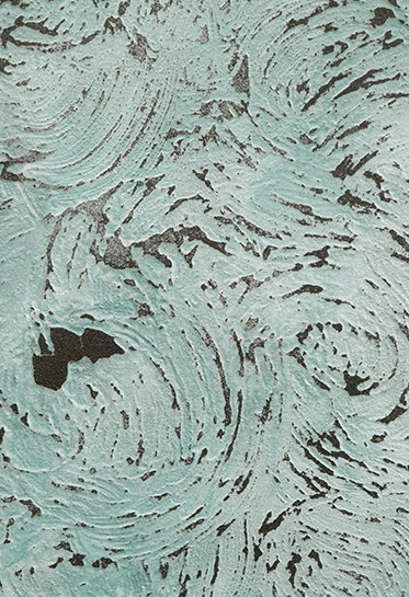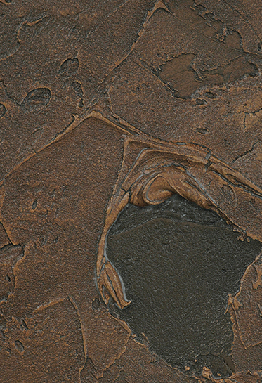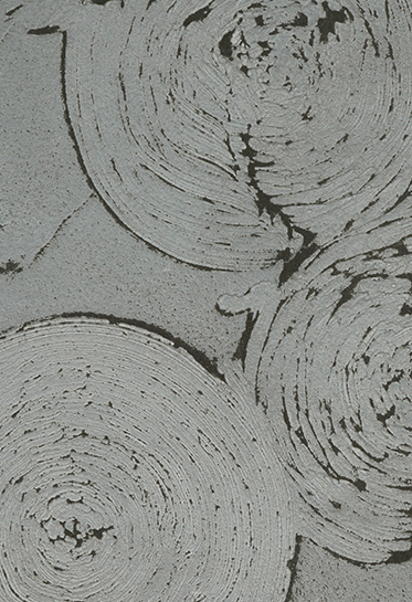 主材を塗布する際、紙を貼ったり、レースやブラシなどモノを用いて凹凸のある表現を表現することができます。さらに前述の「Effetto Colori エイジングシリーズ」を組み合わせることで、更に奥行のある意匠付けを実現しました。